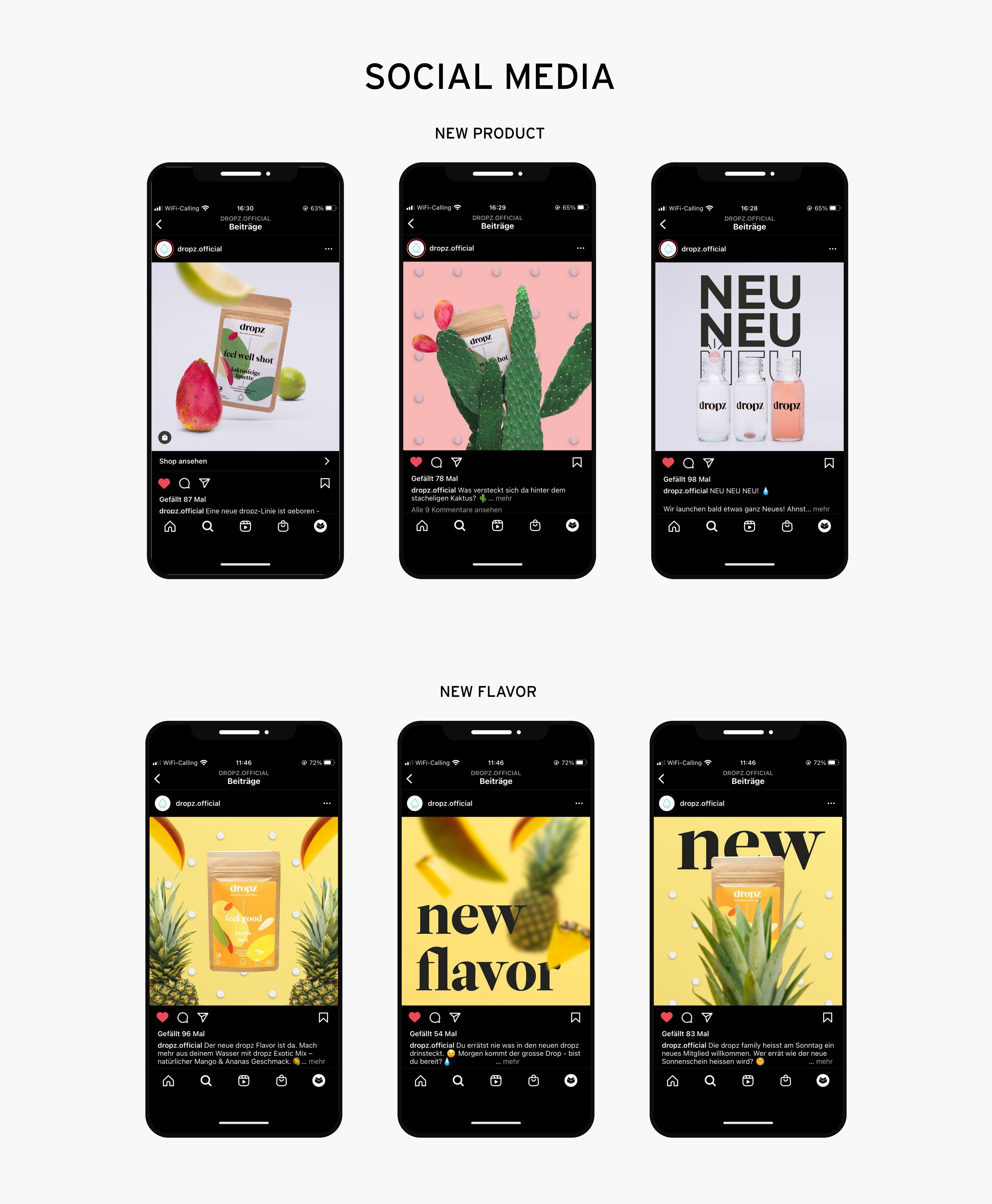 The exciting and fresh startup dropz needed a branding that reflects its contemporary and innovative character and a matching claim (More Taste. Less Waste). In collaboration with GoReclaim we founded a recycling program that enables waste pickers in Ghana access to the national health insurance and a fair wage. As the sole lead agency of dropz since 2020, we supported them through every campaign cycle and the strategic brand development.