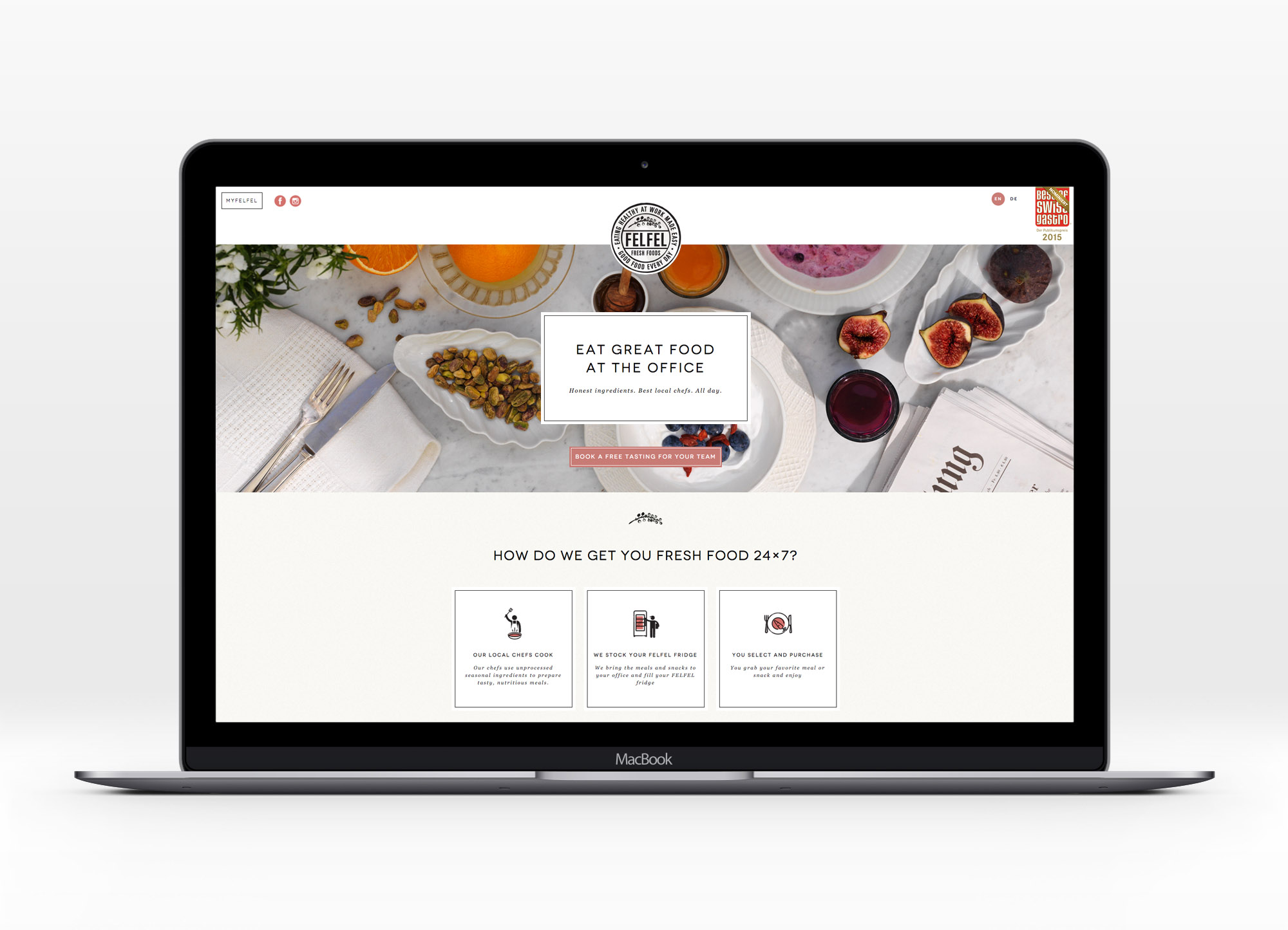In multiple workshops in cooperation with FELFEL we determined the direction of our core business as well as an identity system used to communicate. Through intriguing design for packaging, refrigerators, precise wording and further strategic steps we were able to position FELFEL as a game-changing solution when it comes to healthy eating at the workplace.