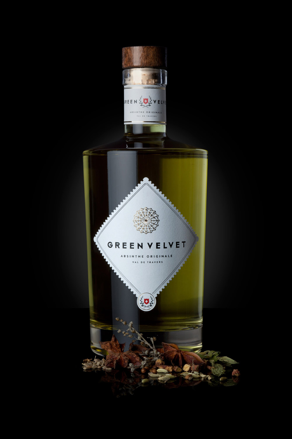 Green Velvet is distilled in the birthplace of absinthe in the Swiss Val-de-Travers according to an original family recipe from 1898. The traditional methods create a unique spirit of highest quality.