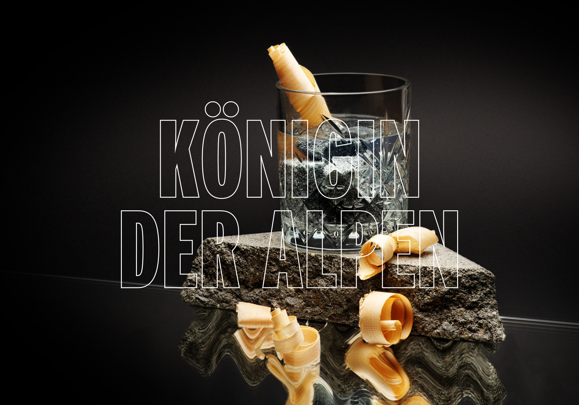 The essence of the Swiss alps in a locally produced dry gin. Without the made up background story, but handcrafted from the finest of botanicals and Swiss pine wood from the Engadin as the central star of this product.