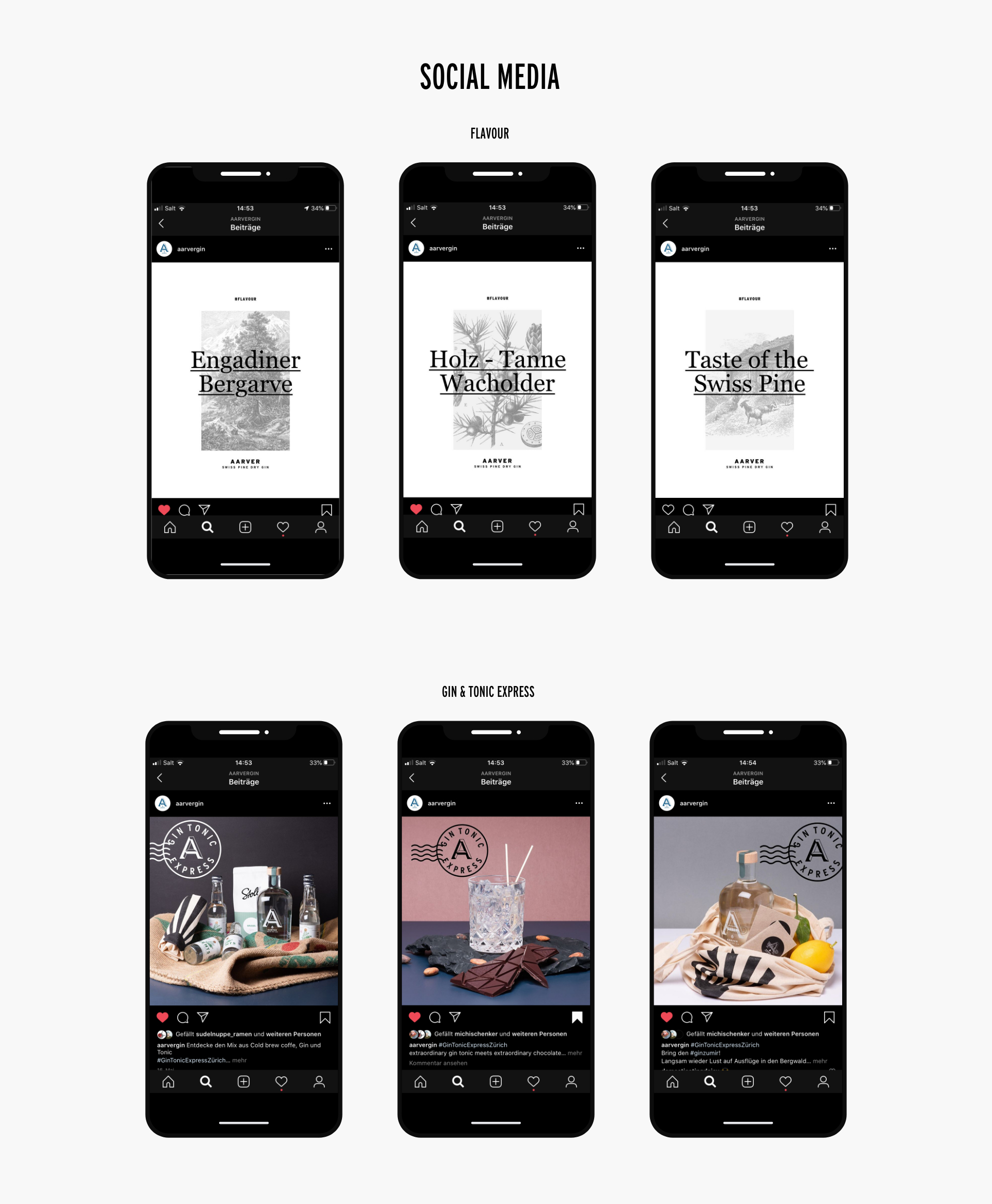 OnlyGoodSpirits found the perfect partner for their idea of a Swiss pine wood based dry gin in Käsers Schloss in the Frick valley. The resulting Swiss Pine Dry Gin in its three versions contains Swiss pine along with other ingredients found in the Swiss mountains. The entire look of the brand, starting with the bottle, going over to the website and packaging as well as matching exhibition stands focuses on the clear and convincing qualities of handmade products and exceptional recipes.