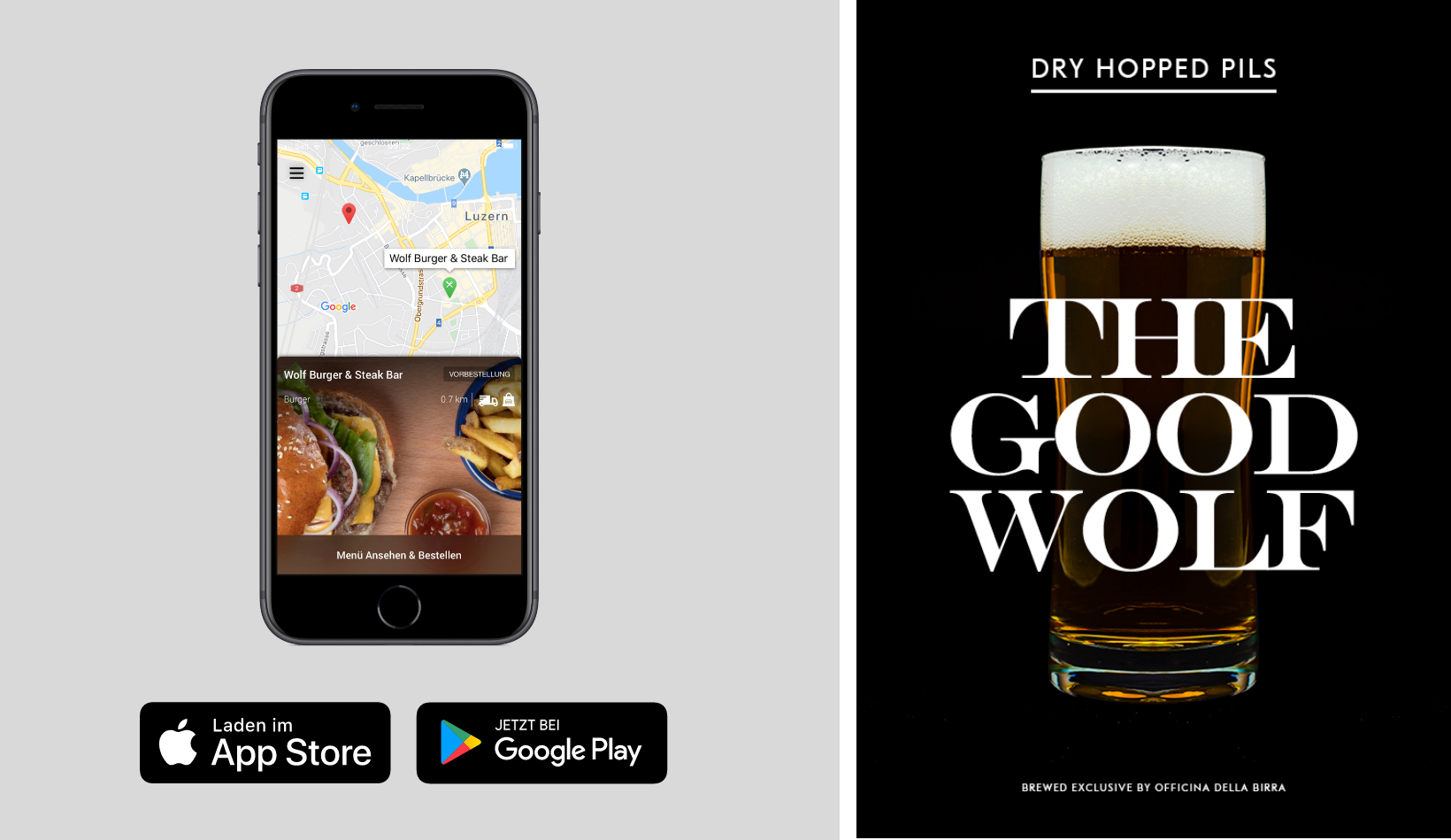 The wolf took centre stage, a fitting mascot that matches the design of the new burger restaurant in Lucerne. Industrial chic is reinterpreted in a modern style, where the art of cooking meat meets nordic design and is perfectly rounded off with a cool Wolf beer on our big and busy terrace.